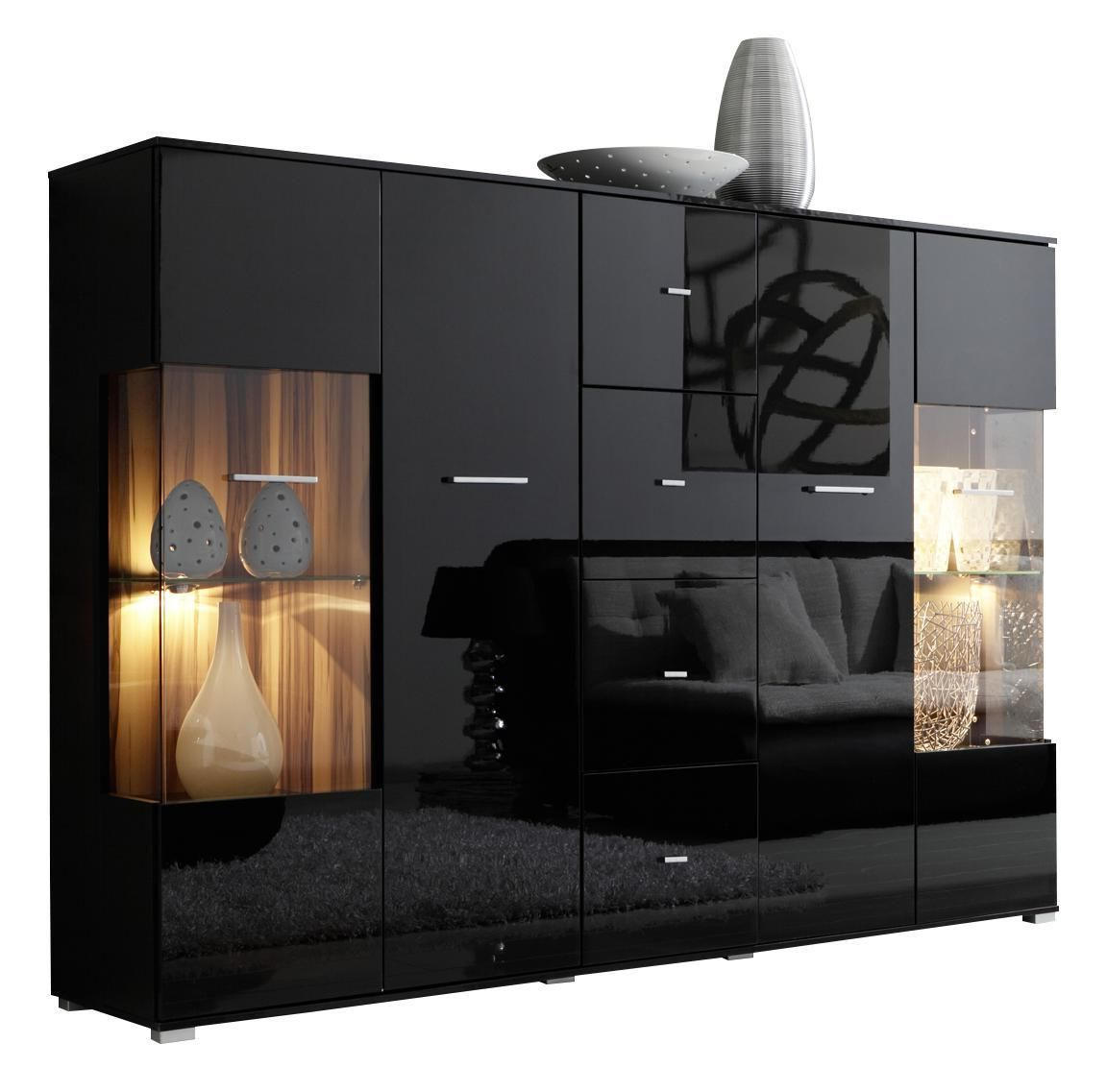 Comodă înaltă în negru cu front lucios: mobilier modern cu iluminat