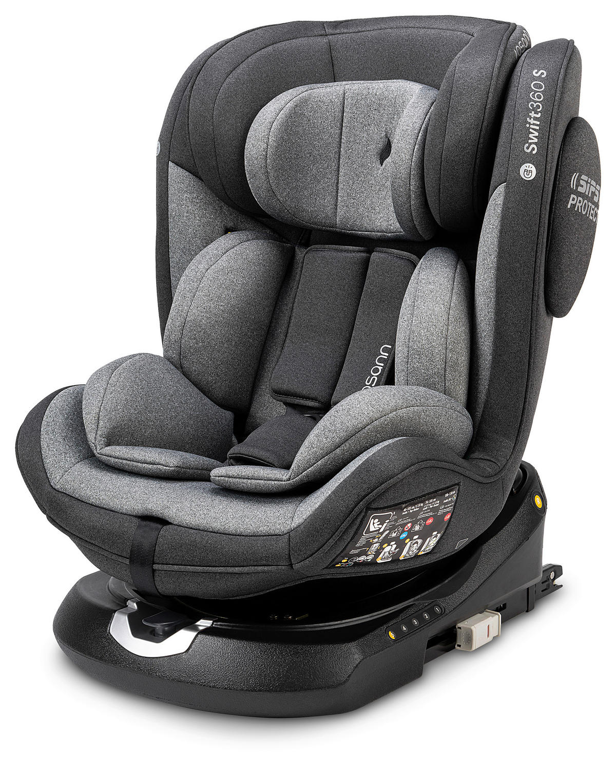 Scaunul auto rotativ OSANN pentru copii "Swift 360S ISOFIX Universe Grey" impresionează prin inovația sa inteligentă. Datorită funcției de rotație 360°, nu numai că aduceți vrabia cu ușurință în vehicul, dar schimbarea cu și împotriva direcției de deplasare este ușoară. Poziția de reîmbarcare este recomandată pentru cei mai tineri până la aproximativ 18 kg, dar atașamentul orientat spre față este deja posibil pentru copiii de la aproximativ 9 kg sau aproximativ 76 cm.