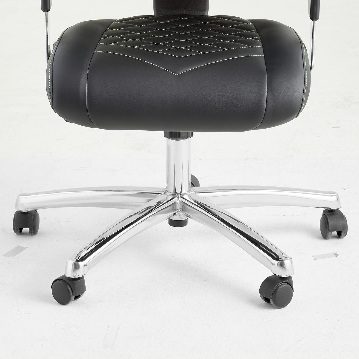 Acest scaun de gaming în negru și verde vă răsfață, de asemenea, cu un factor de confort ridicat pentru ore. Viața interioară a spumei de formă contribuie la acest lucru. În plus, spătarul în formă ergonomică se potrivește exact corpului tău. Cu ajutorul tetierei și cotierelor reglabile în înălțime, vă puteți poziționa perfect pentru a vă așeza la birou sau în fața consolei pentru o perioadă mai lungă de timp. Scaunul este reglabil în înălțime cu ajutorul unui ascensor cu gaz.